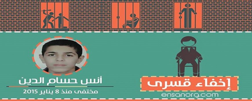 -أنس حسام الدين بدوى- طالب بالصف الثانى الإعدادي من العريش معتقل منذ ٨ يناير ٢٠١٥، وردت أنباء عن وجوده بسجن العازولى و مع ذلك لم يعرض على أى جهة تحقيق حتى الآن، مما يُعد ذلك جريمة ضد الإنسانية بناءاً علي المادة 5 من الاتفاقية الدولية لحماية جميع الأشخاص من الإخفاء القسرى و التي تنص علي: