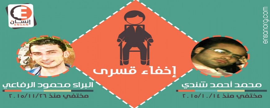تستمر قوات الأمن بالدقهلية في إخفاء طالبين بجامعة المنصورة قسرياً بعد اختطافهما لأكثر من 45 يوما، وحتي الآن لم تستطع الأهالي معرفة أي شئ عن مكان احتجازهم وهم : “البراء محمود الرفاعي” ٢٥ سنة، من كفر البطيخ، طالب بكلية التجارة -تعليم مفتوح- جامعة المنصورة. اختطف يوم الخميس 26 نوفمبر 2015 ليلا من المنزل ومازال مختفي حتى الآن.