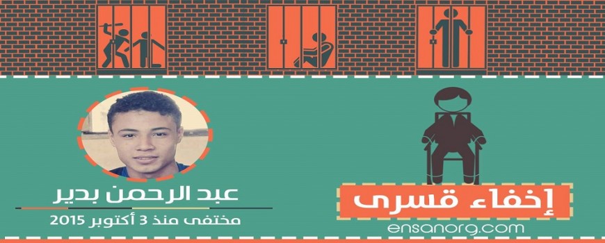 هذا و تحمل أسرة الطالب عبدالرحمن بدير وزارة الداخلية مسؤولية سلامته وتطالب جميع المنظمات الحقوقية بالتدخل السريع للتعرف على مكان احتجازه والإطمئنان على حالته الصحيه خاصة أنه تعرض الاسبوع الماضي لحادث سير على الطريق السريع أدى الى شرخ فى الحوض وجائت توصيات الطبيب إليه بعدم بذل أي مجهود .