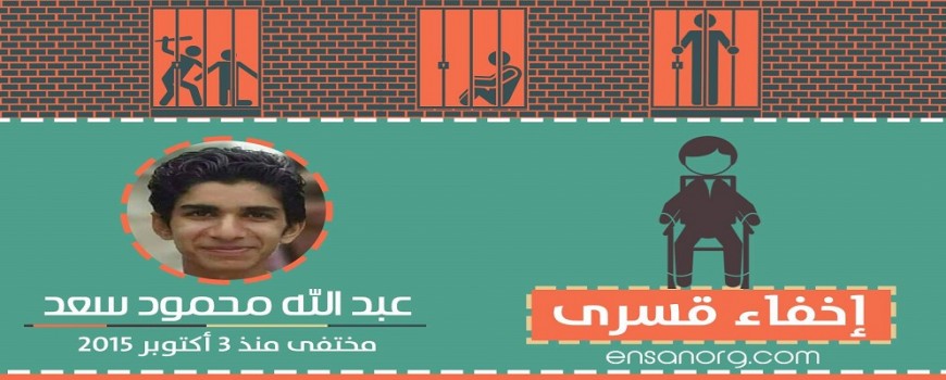إخفاء قسري للطالب عبدالله محمود سعد حيث اختطفته قوات الأمن من أمام منزله بالشرقية اليوم 3 أكتوبر ، يُذكر أن والده وشقيقه معتقلان منذ قرابة العام.