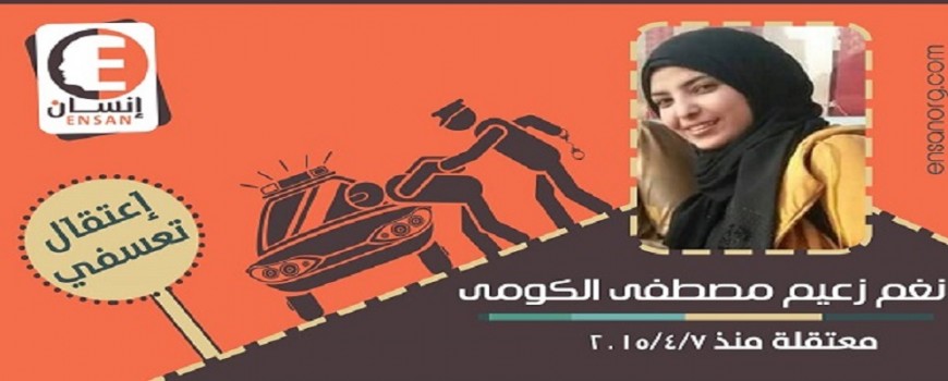 امتداداً لسلسة الإنتهاكات بحق طلاب جامعة المنصورة، قامت قوات الأمن أول أمس بـ إعتقال تعسفي لـ ” نغم زعيم مصطفي عبدالرحيم ” الطالبة بالفرقة الثانية بكلية الحقوق في مخالفة صريحة للقانون من أحد الأكمنة وتم إقتيادها لقسم الشروق ثم عرضها على نيابة الشروق المنعقدة بمحكمة التجمع الخامس التي قررت اليوم حبسها أربعة أيام احتياطياََ على ذمة التحقيق.