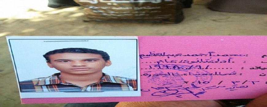 الطفل “محمد أحمد عبد العظيم” – بالمرحلة الأولى الثانوية ، يسكن بقرية الجورة جنوب الشيخ زويد بشمال سيناء، متغيب عن المنزل منذ ما يقارب 20 يوما، ويُذكر أنه أُخذ اشتباه بأحد المقرات الأمنية بالشيخ زويد، ولكن تم إخلاء سبيله بعد 3 أيام ، ولكنه لم يعود إلى المنزل حتى هذه اللحظة ولم يستدل على مكانه
