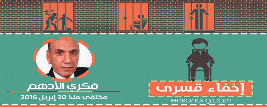وصلت لمنظمة ” إنسان للحقوق والحريات ” شكوى من أسرة المواطن ” فكري الأدهم ” بشأن اختطافه وإخفاؤه القسرى من القاهرة أثناء ذهابه إلى الطبيب إثر تدهور حالته الصحية، أمس الأربعاء 20 إبريل من أحد الأكمنة، و منذ لحظة اختطافه انقطع التواصل معه و لم يتسنى لأهله أو محاميه معرفة مكان احتجازه.