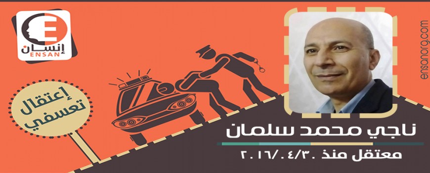 فوجئت أسرة ” ناجي محمد حامد سلمان ” معلم – 56 سنة – بمدرسة تل الكاشف الثانوية، اليوم 30 من إبريل 2016، باقتحام منزلهم بمركز دقهلة محافظة دمياط من قبل قوات الأمن واعتقال رب الأسرة تعسفياً دون إذن من النيابة أو سبب يُذكر، وقامت القوات باقتياده إلى جهة غير معلومة ولم يتسنى لأسرته أو محاميه معرفة مكان احتجازه حتى الآن.