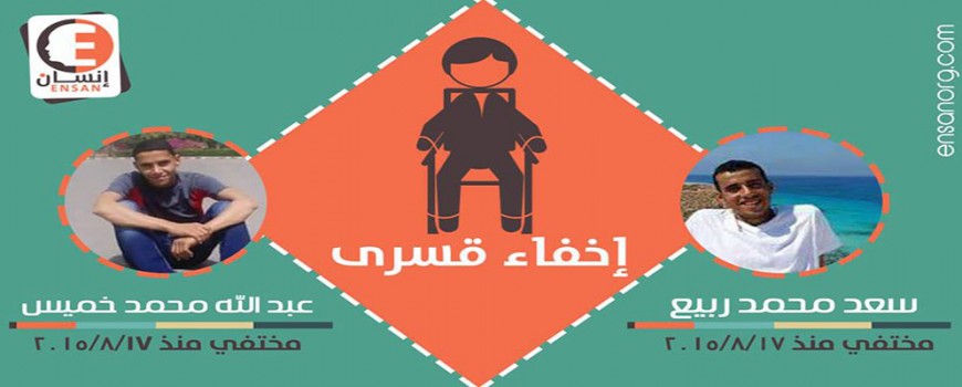 استمرار الإخفاء القسري للطالبين بتجارة حلوان ، عبد الله محمد خميس و سعد محمد ربيع منذ 17 أغسطس 2015 حيث كانا متواجدان بـ مرسي مطروح و لا يعلم أحد عنهما شيئاً حتي الآن، مما يُعد هذا جريمة ضد الإنسانية بناءاً علي المادة 5 من الإتفاقية الدولية لحماية جميع الأشخاص من الإختفاء القسري و التي تنص علي: