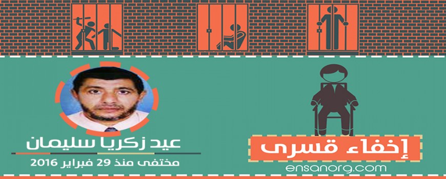 كانت قوات الأمن قد قامت باختطاف ” عيد زكريا ” من مقر عمله بمدرسة الغرق الثانوية التجارية في التاسع والعشرين من فبراير الماضي وقادته إلى مكان غير معلوم ، وأعربت أسرته عن قلقها البالغ خاصة بعد تقديم العديد من البلاغات لعدد من الجهات المختلفة ولم تعلن أي جهة مسئوليتها عن احتجازه حتى الآن، كما تحمل الأسرة المسئولية الكاملة لمدير أمن الفيوم ووزير الداخلية في حال تعرضه لأي خطر.