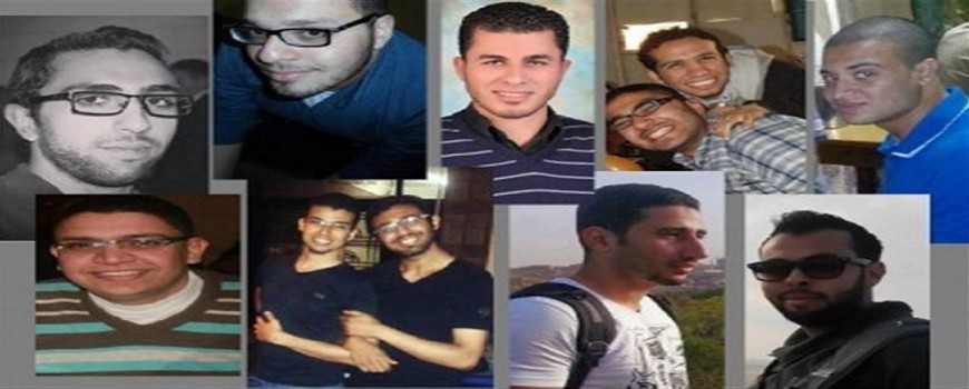 والمعتقلين هم: “أسامة محمد محمد الشيخ – 27 عامًا”، و”محمد إبراهيم متولي صقر 25 عامًا”، و”محمد عبدالله عمر أبو المجد- 24 عامًا”، و”أحمد محمد مرسي السمخراطي – 24 عامًا”، و”أحمد عبداللطيف محمد عبداللطيف– 24 عامًا”، و”معتز محمد أحمد المكاوي – 23 عامًا”، و”عمر سمير سعيد نوفل – 23 عامًا”، و”شادي سعيد شعبان سعيد– 22 عامًا”، “إسلام سيد محمد خلاف – 22 عامًا”، “مصطفى حسن حامد خضر”، أخيرا “محمد أشرف محمد خمخم”.
