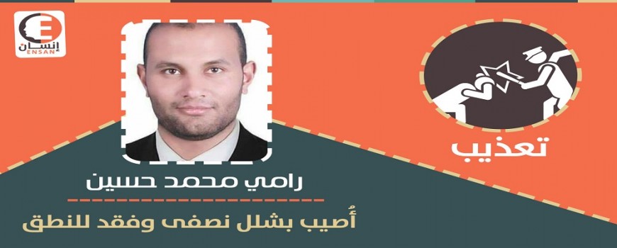 استقبلت منظمة إنسان للحقوق والحريات استغاثة من أسرة المعتقل ” رامى محمد حسين حسين عبدالله “، 29 عامًا، متزوج وله من الأبناء ثلاثة ، ويعمل مُعيدًا بكلية الآداب – جامعة قناة السويس بمحافظة الإسماعيلية، ويقيم بمنطقة “مدينة ومركز بئر العبد – محافظة شمال سيناء” تفيد اصابته بشلل بنصف جسده الأيسر وفقد للنطق جراء التعذيب الشديد والضرب المُبرح بالهاراوات الخشبية “الشوم” والإفراط فى صعقة بالكهرباء ، مما إدى إلى ضرورة إجراء جراحة عاجلة له بالمُخ حيث أن هناك عصب ضاغط إثر الضرب الذي تعرض له، أدى لشلل بيده وقدمه اليسرى.