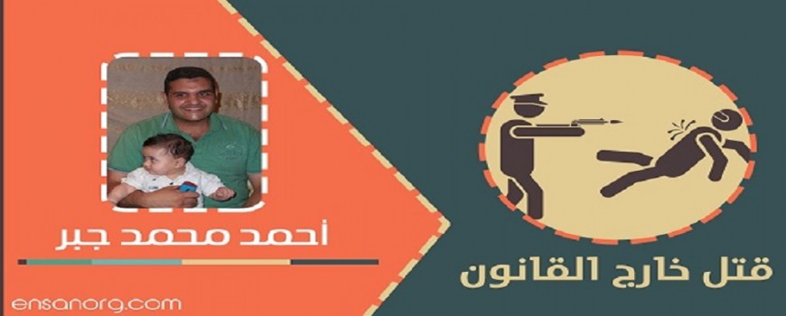 قتل خارج القانون للمهندس أحمد محمد جبر نشر في 17 مارس، 201527 يوليو، 2015 لقى المهندس ” أحمد محمد جبر “ مصرعه نتيجة إطلاق الرصاص الحى عليه من قبل قوات الأمن بالإسكندرية بمنزله أمام زوجته و طفله ذي العامين بمنطقة بسيدي بشر-الإسكندرية ، يذكر أنه تم اختطاف الجثمان و الزوجة و الطفل إلي مكان مجهول حتي الآن