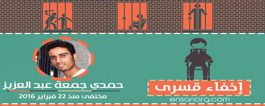 وأكد ذوى المُختطف أنه لم يتم التعرف على مكان احتجازه حتى الأن، وذلك بعد 9 أيام من اختطافه وإخفاءه قسرياً من جانب قوات الأمن، وناشد ذوي المُختطف منظمات حقوق الانسان للكشف عن مكان احتجاز ابنهم ، وأعربوا عن مخاوفهم من تعرضه للتعذيب للضغط عليه للاعتراف بجرائم لم يرتكبها.