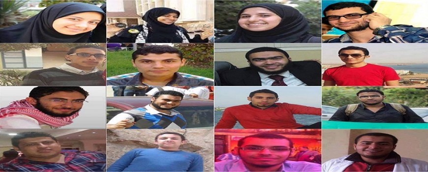 (عمر البسيوني الطالب بـ كلية الهندسة، أحمد أيمن نصر الطالب بـ كلية الطب، خالد يوسف الطالب بـ كلية الحاسبات والمعلومات، احمد شعبان الزناتي الطالب بـ هندسة الدلتا، وعادل فهمي المقيد بـ كلية التربية”).