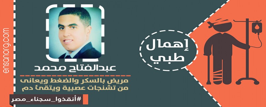 يعانى المعتقل “عبدالفتاح محمد عبدالفتاح” 22 عاما- الطالب بالفرقة الأولى كلية التجارة، من الإهمال الطبى المتعمد من إدارة سجن برج العرب بالإسكندرية، حيثُ أنه مصاب بأمراض الضغط وإرتفاع الكوليسترول، كما يعانى أيضا من تشنجات عصبية وأنيميا حادة منذ أكثر من عام ونصف، كما أنه لا يستطيع النوم إلا عن طريق المنوم ومدة لا تزيد عن أربعة ساعات فقط.