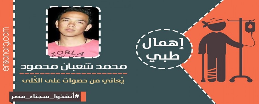استمرارً لسلسلة من الإهمال الطبي بحق المعتقلين عامةً ، و خاصةً بسجن العقرب ، يُعاني المعتقل محمد شعبان محمود ابن الــ 18 عام من وجود حصوات على الكُلى ، حيث يستلزم ذلك تناوله الكثير من السوائل لتسهيل تفتيت تلك الحصوات ومن ثم التخلص منها، إلا أن وجوده بسجن العقرب المعروف بسؤء سمعته يحول دون ذلك مما يُشكل خطراً علي صحته.