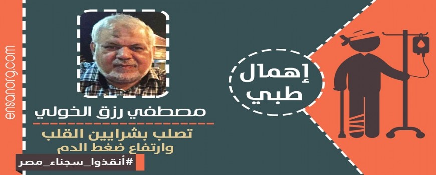 وقالت أسرة “الخولي” أنه مريض قلب و مصاب بتصلب شرايين، ويحتاج إلى تركيب دعامات بشرايين القلب ويحتاج عملية قلب مفتوح، حيث أنه يصاب بنوبات قلبية تؤدي لفقدانه الوعي أثناء سيره وحدثت له داخل محبسه عدة مرات دون متابعة أو علاج، كما يعاني من مرض سكر ويصاب بغيبوبة سكر، وفضلاً عن اصابته بإرتفاع ضغط الدم وأصيب بتجلطات أسفل عينيه ولا تتوفر له أدوية السيولة داخل محبسه.